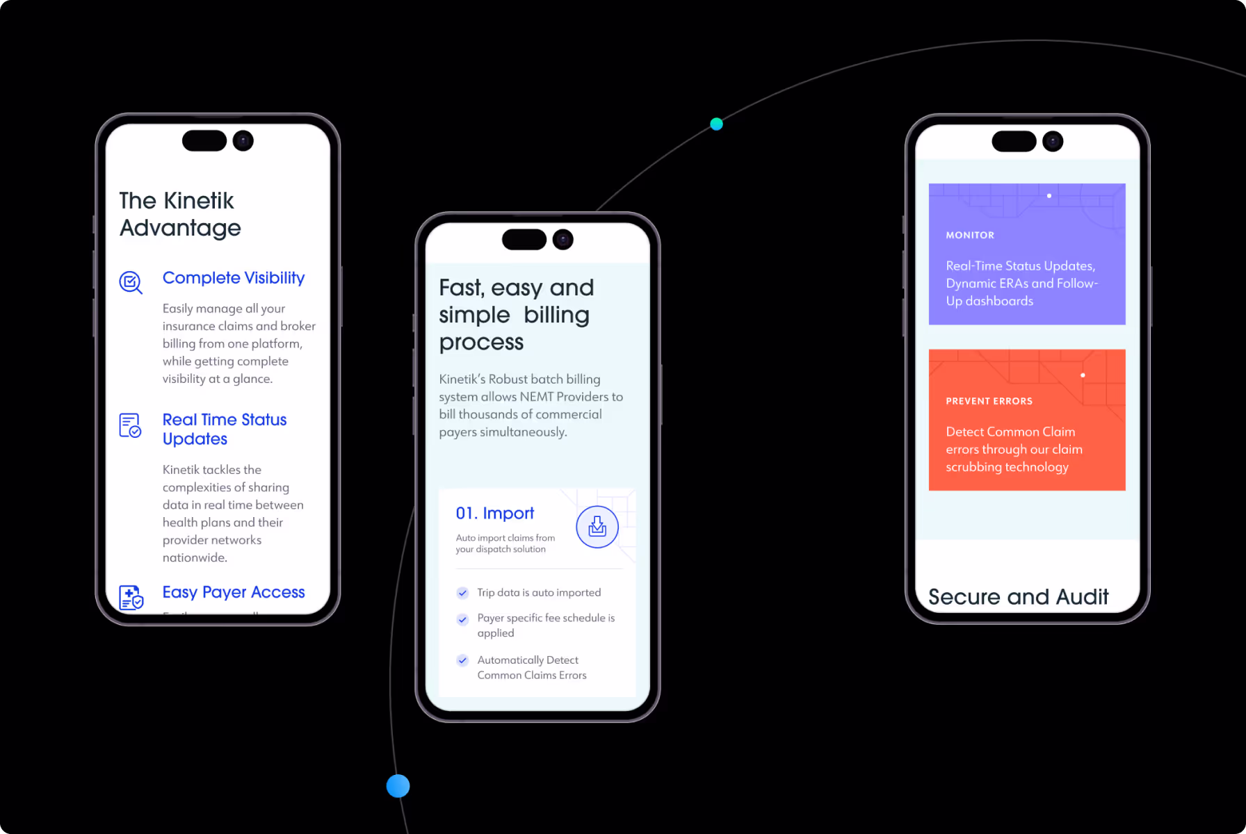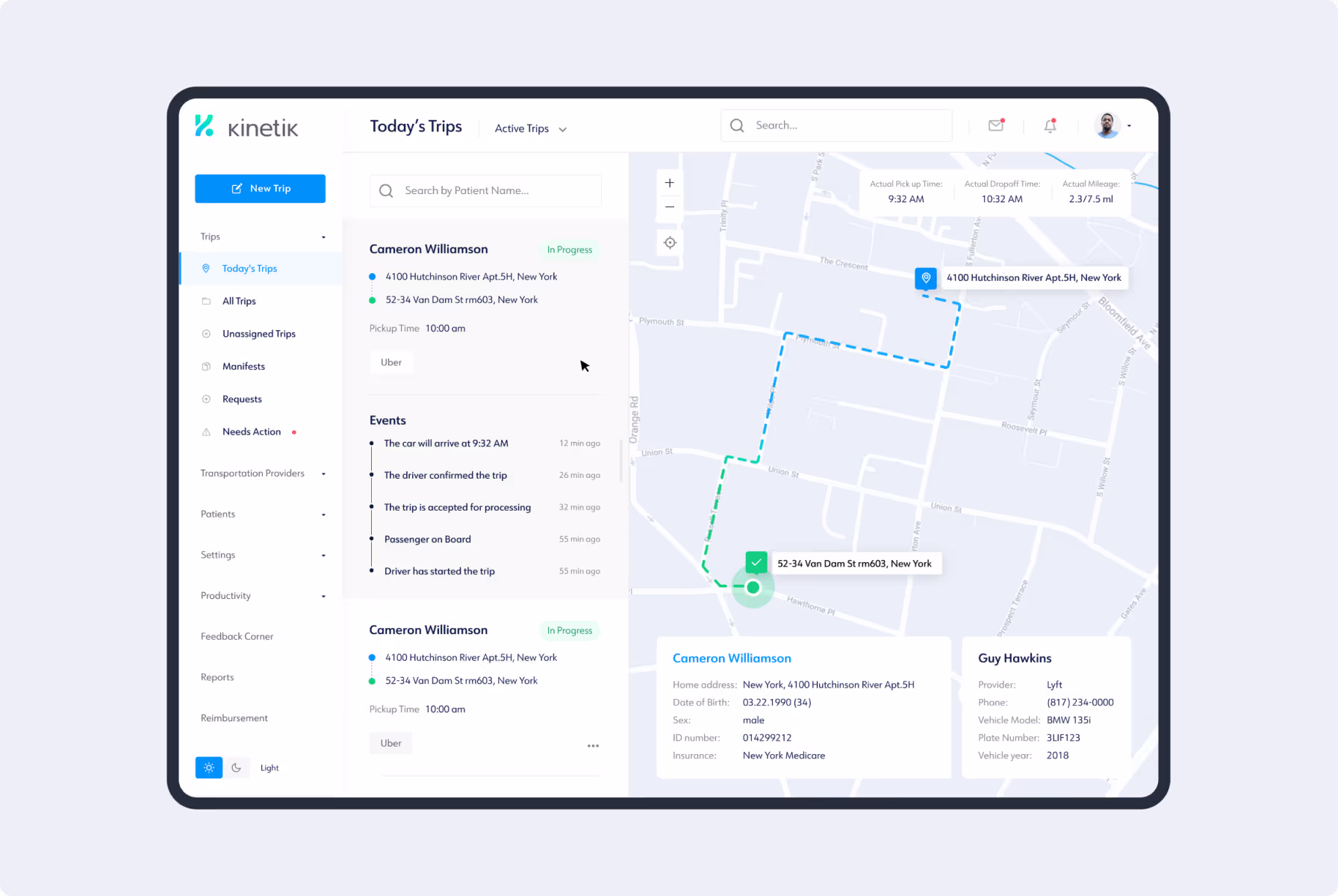 The platform is a digital ecosystem designed to transform non-emergency medical transportation (NEMT). It connects patients, transportation providers, and insurers in one place, making it possible to schedule trips, automate billing, and monitor service performance with greater transparency. By addressing long-standing issues of inefficiency and reliability in NEMT, the platform ensures that patients can access medical care on time, providers can manage operations more effectively, and insurers gain visibility into service quality and costs.
